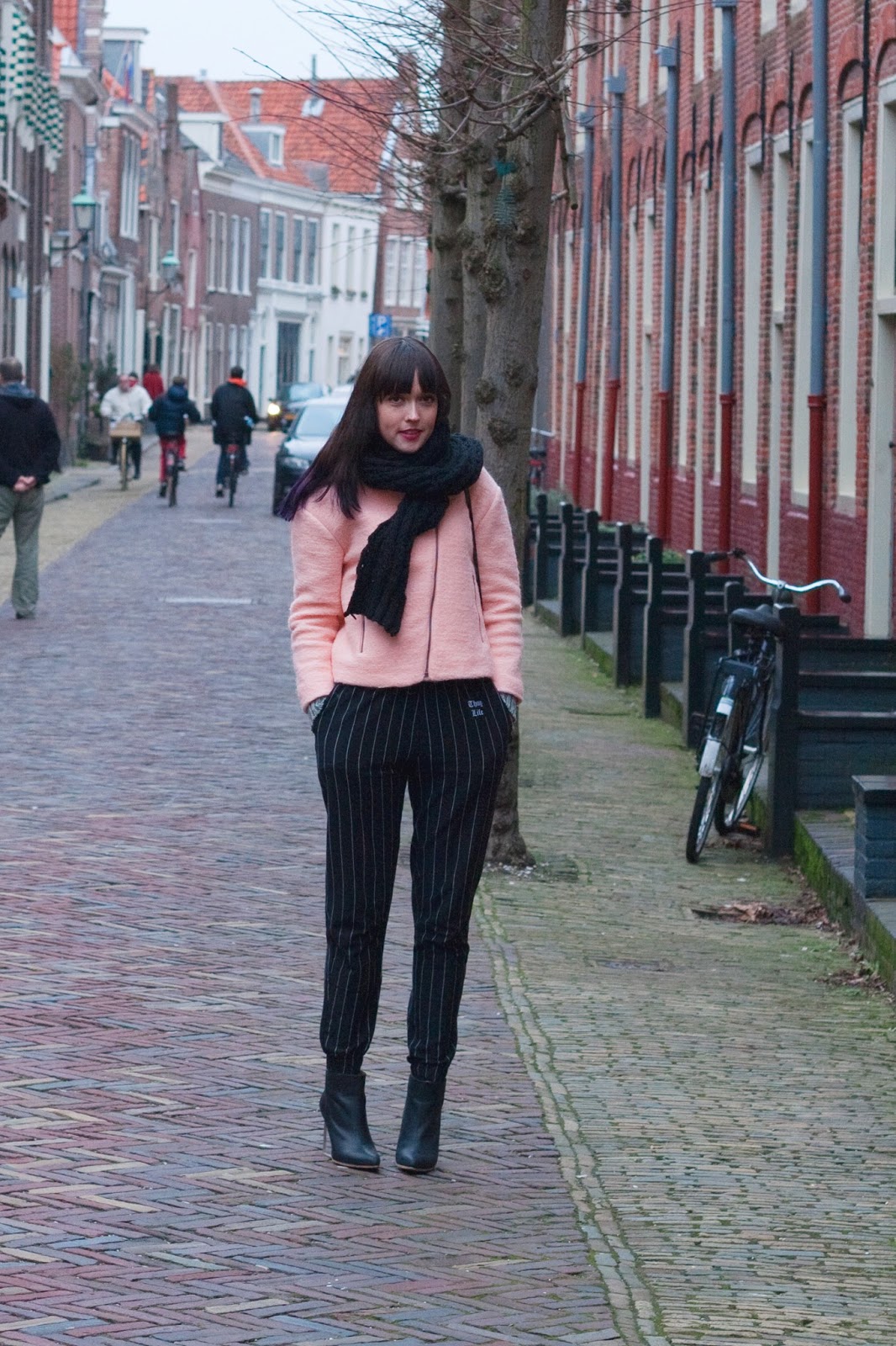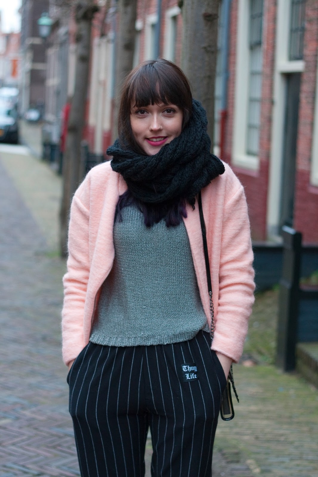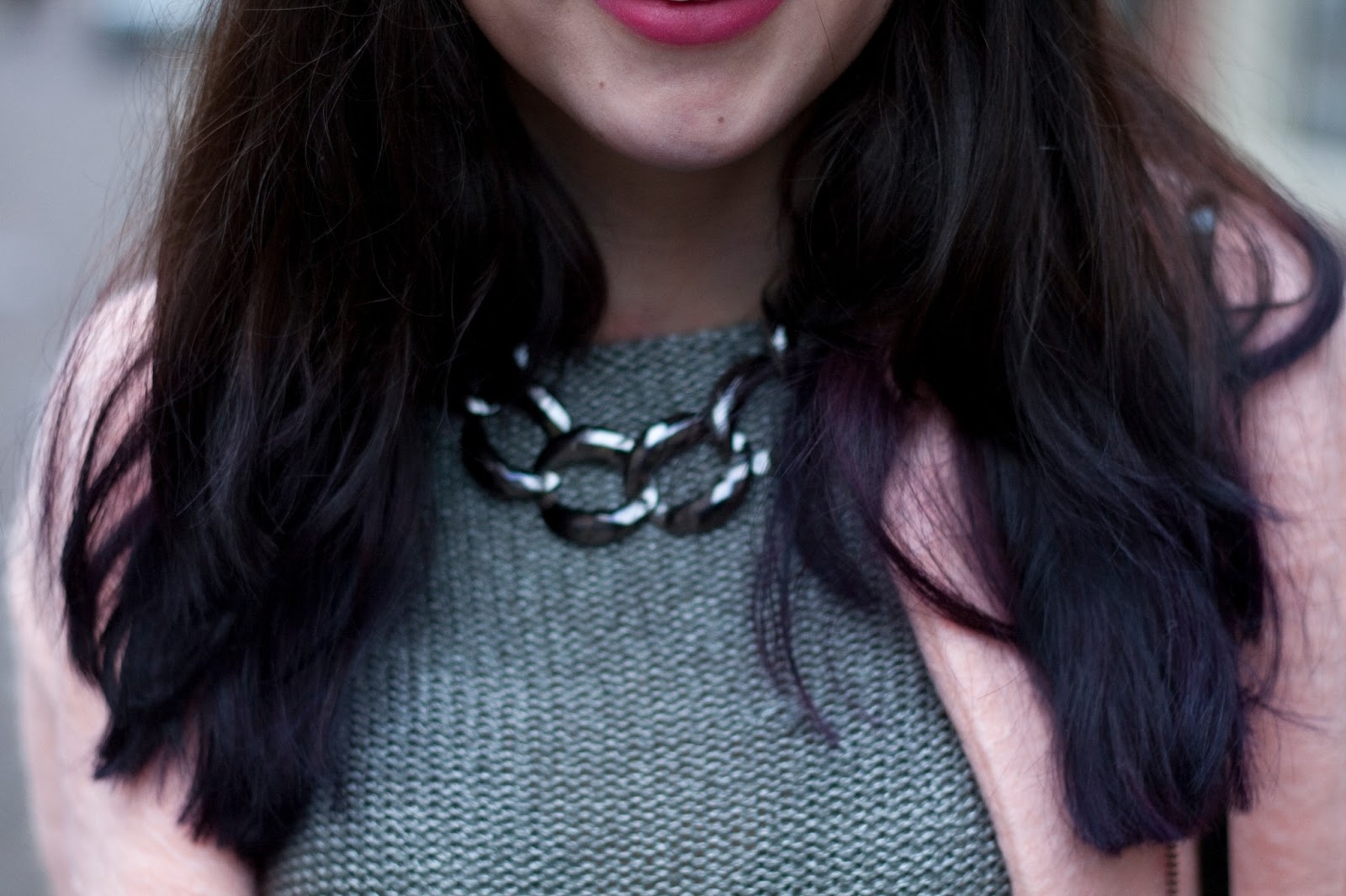 pink fluffy jacket: h&m trend (similar here) silver sweater: river island (similar here) thug life pinstripe trousers: weekday (similar here) chain necklace: topshop (similar here) transparent purse: h&m (similar here) transparent wedge booties: maison marting margiela x h&m (similar here)