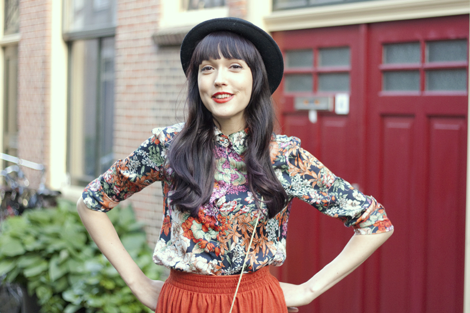 floral shirt: zara (similar here) orange skirt: american apparel (similar here) straw purse: primark (similar here) lace-up wedgesjeffrey campbell (similar here)