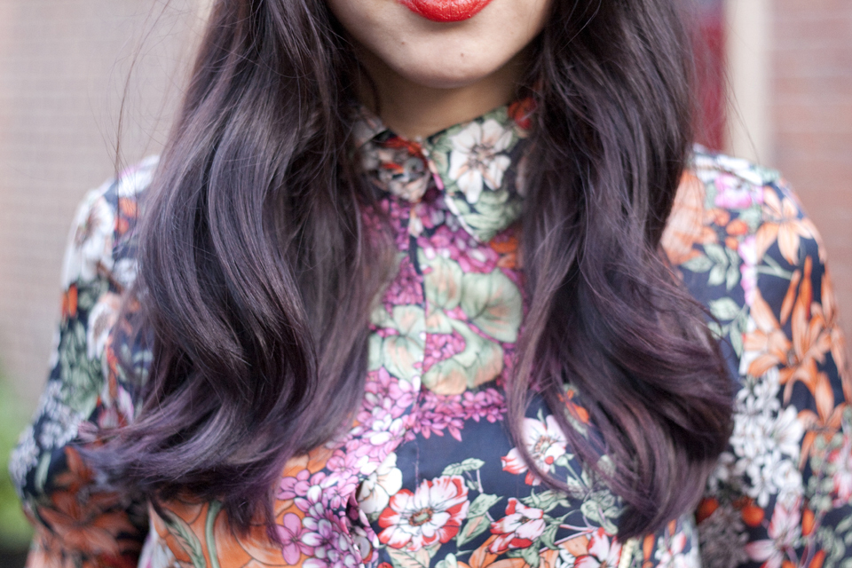 As you may notice my hair has changed: one of the benefits of my new job – designer at the holding company of a couple of hairdressing salon chains, woah moutful, but I don’t know how to put it otherwise – is that I can have my hair cut and coloured every once in a while. This was the first time for me, so I decided to go with something a little different than my usual dipdye. My initial idea was to get a greyish lavender shade, but unfortunately this would mean bleaching my hair. After my ombre experiment about a year ago I now know that my hair will end up completely fried. So I went with a different shade of purple. I actually really like it, since it’s quite subtle and not wham-shabam-in-your-face purple.