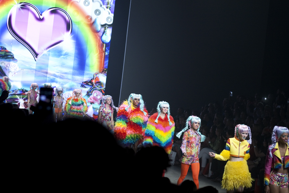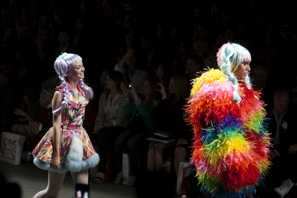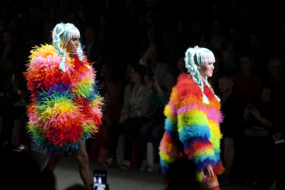 The second show I visited by MaryMe-JimmyPaul was something entirely different and therefore very refreshing. The whole collection is so colourful, I thought it was a Skittles commercial. The show was built around an interactive experience. When logging onto a special website the audience was able to vote on every outfit. At the end of the show the best and worst outfits were shown. I guess the keyword for this show was ‘fun’. I had a smile pasted on my face throughout the entire show.