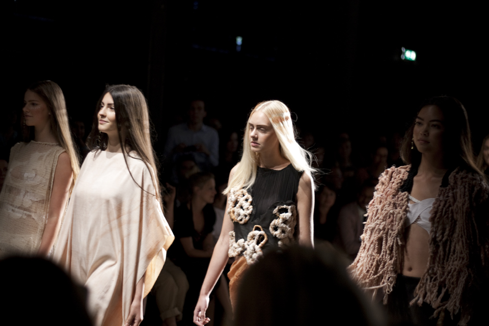 See what I did there? I skipped a day. Not because I didn’t go, but because I made one of those blogger mistakes: I left my camera card in the computer when rushing to Fashion Week for the third day. I was quite annoyed with it, because not only was I walking around like a fool with a camera that couldn’t take any pictures, I also couldn’t take pictures of some of the most interesting shows. The shows I visited on day 3 were by Tony Cohen, Dorhout Mees and Nata Ryzh. I was very much impressed by the quality of these shows and enjoyed Dorhout Mees’s show most of all. I love the atmosphere that was created, but talking about it without images seems a bit silly. That’s why I added a little teaser video below, which was shown at the beginning of the show. I think all garments were stunning, I just loved the shapes and prints that were part of this elegant collection. The show was very well executed, which made it a great experience to watch.Now on to the shows I saw at day 2 and day 4: The SS14 collection of Fredfarrowbrittavelontan (oof, mouthful) is inspired by nature. Watching it I think it reminds me of the sea and sea life. In fact it reminds me of fishing nets, coral reefs and mermaids, which is pretty cool.The Anne de Grijff (debut!) show was very impressive as well. The press release reads that her SS14 collection is inspired by traditional Dutch folding techniques. An original choice, which translates to a lot of geometric shapes (the shapes that are created when folding linen). Besides this idea being very original, the execution of the runway show was very original as well. The floor was covered in different shapes and while walking down the runway each model followed a different shape. This resulted in a sometimes chaotic, but above all very cool show. The live string quartet playing improvised jazz music really added to this. Again, it was a really cool experience to watch. As was the Dorhout Mees show. Of which I don’t have pictures. Boo me. Hope you enjoy these pics!