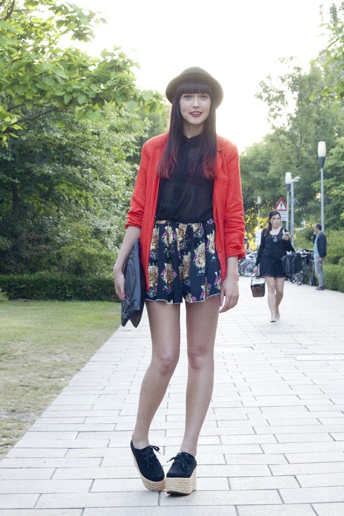 super awesome tiger prints shorts courtesy of oasap (here) sheer black blouse: monki (similar here) bra top: forever 21 (similar here) red blazer: h&m trend (similar here) flatforms: topshop (here) geometric leather clutch: h&m trend (similar herebowler hat: h&m (similar here