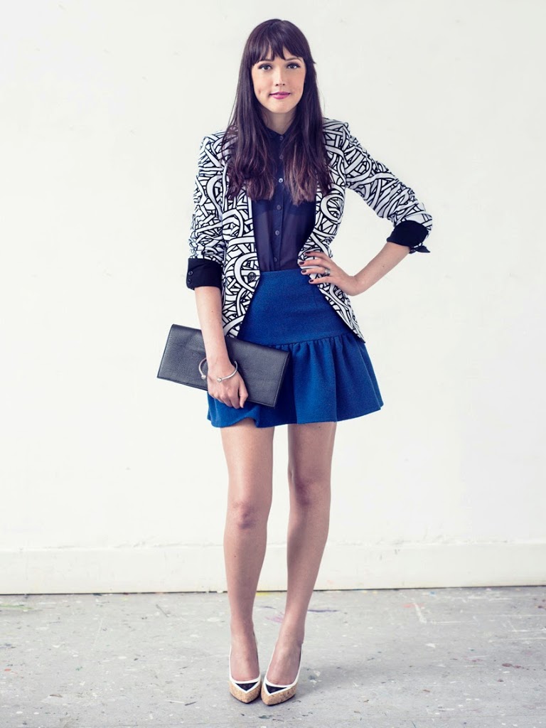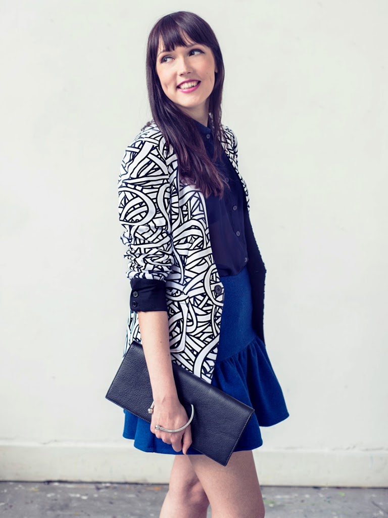 look 2: dark blue blouse: topshop (similar here) pephem skirt: asos africa (here) pierced clutch: nowhere (similar here) cork pumps: antipodium for asos (here, they’re a quarter of the original price now :’)) jacket courtesy of objection (here)