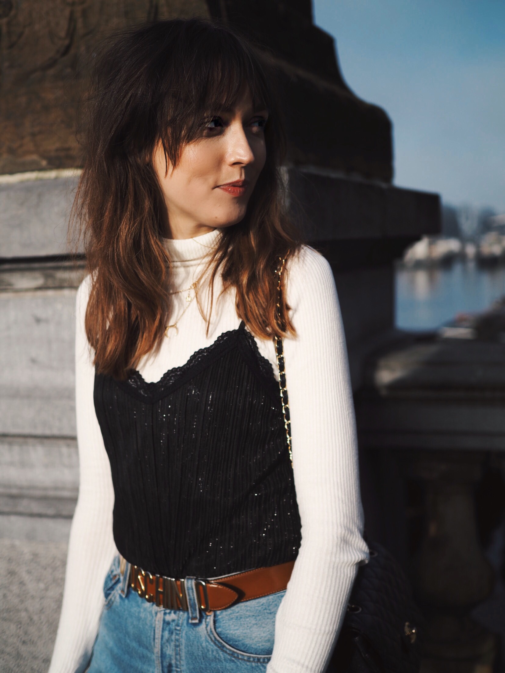 Karen Millen / Jeans Levi’s vintage / Belt Moschino vintage via Etsy / Bag Chanel / Boots Vagabond via Tits Store