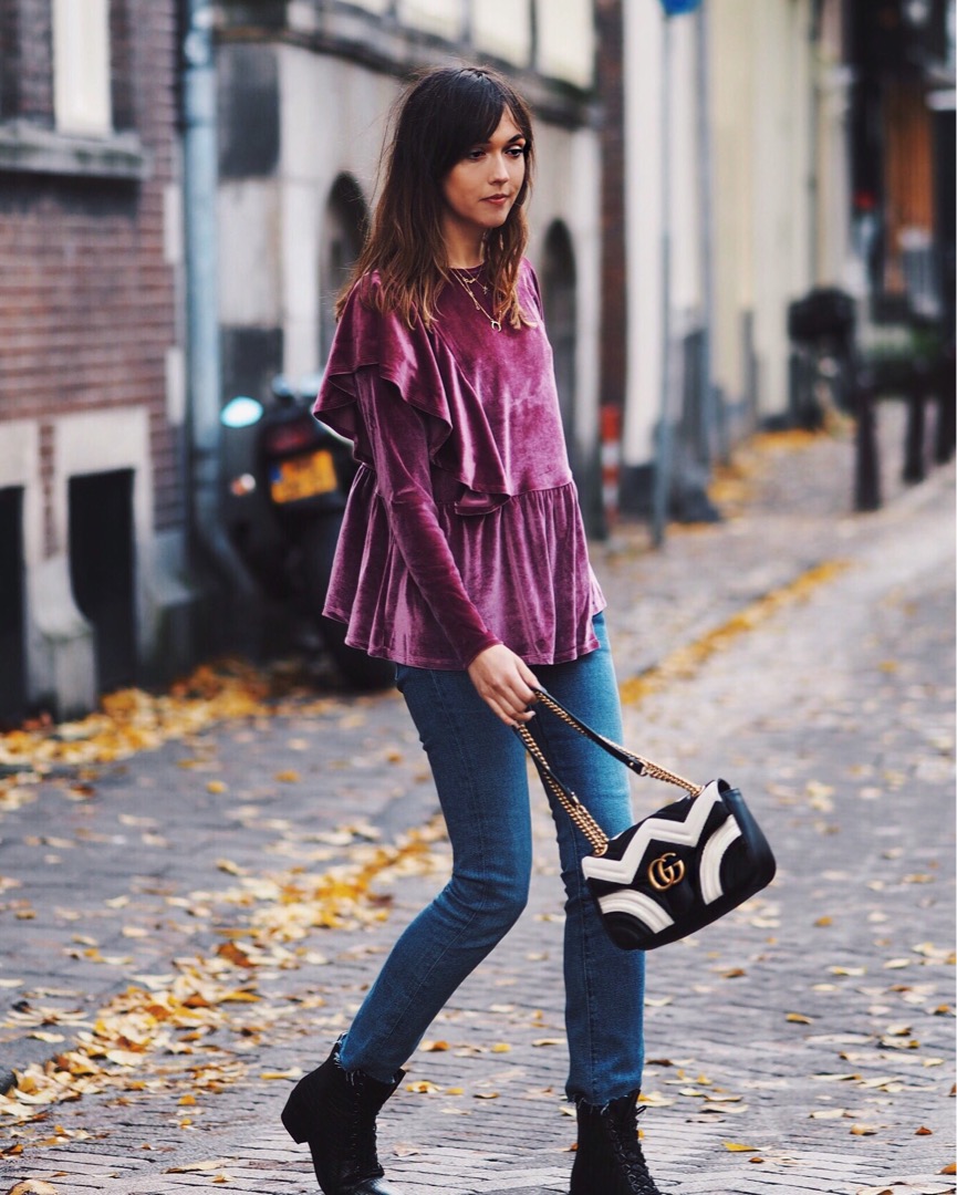 But when I saw the fabric returning in fashion as well my heart skipped a beat. There is something about this fabric – oh who am I kidding, I don’t just mean something, there’s a whole list that I love! The fabric is rich, luxurious, soft, shiny and any colour comes out so well. It’s easy to combine too. A casual outfit can be made less casual or you can wear it with leather for a rock chic feel.