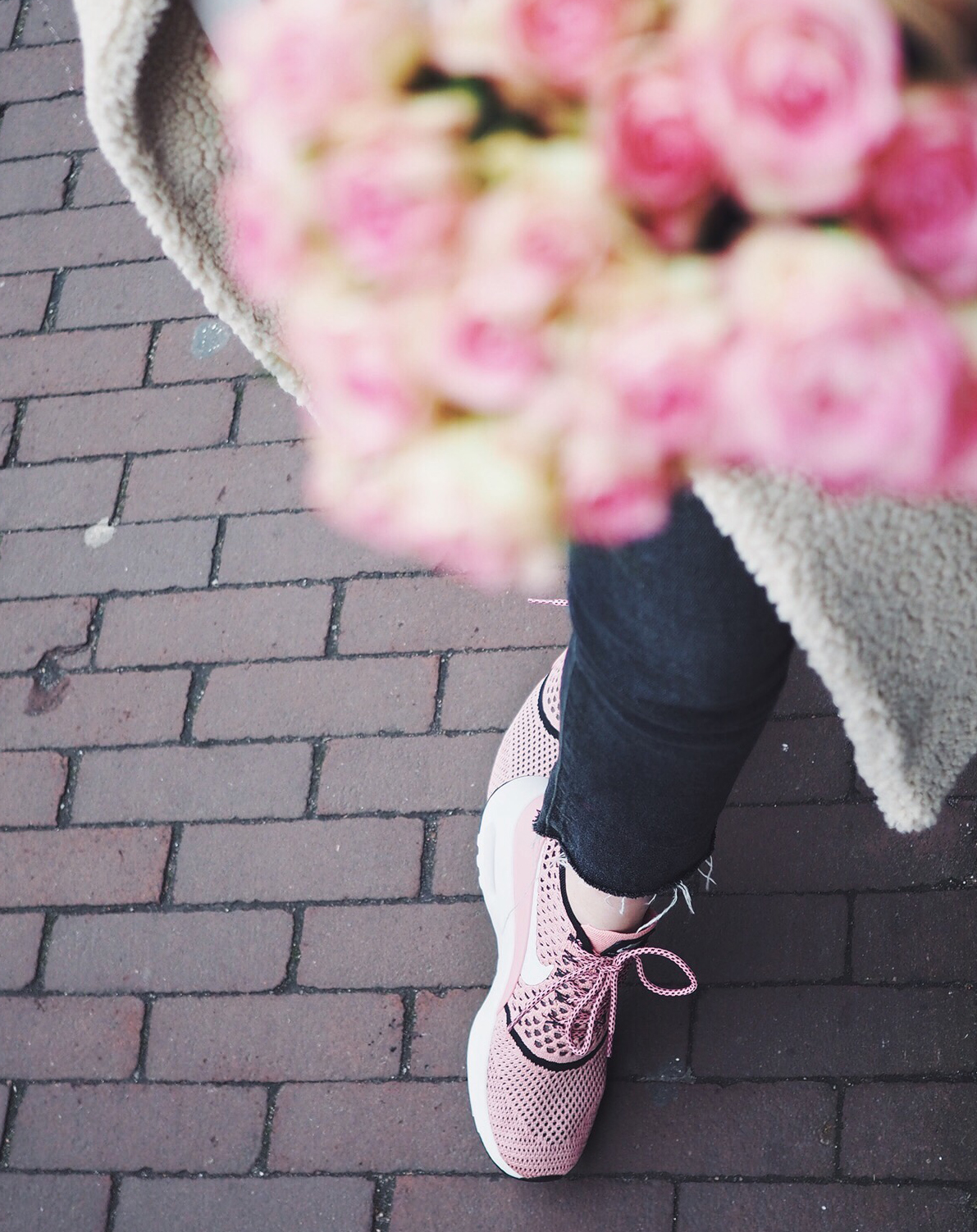 Yes, I’ll admit it: I’m a shoe addict! I collect shoes in all shapes & colours. One day I’ll wear booties, the next I’m wearing sneakers. When life gets busy – and tbh when doesn’t it?! – I opt for the latter. And who better to turn to than sneaker champion Nike? It’s like they had me in mind with their latest design: the Nike Air Max Thea in Flyknit material – in pink! I had to have them the minute I saw them.